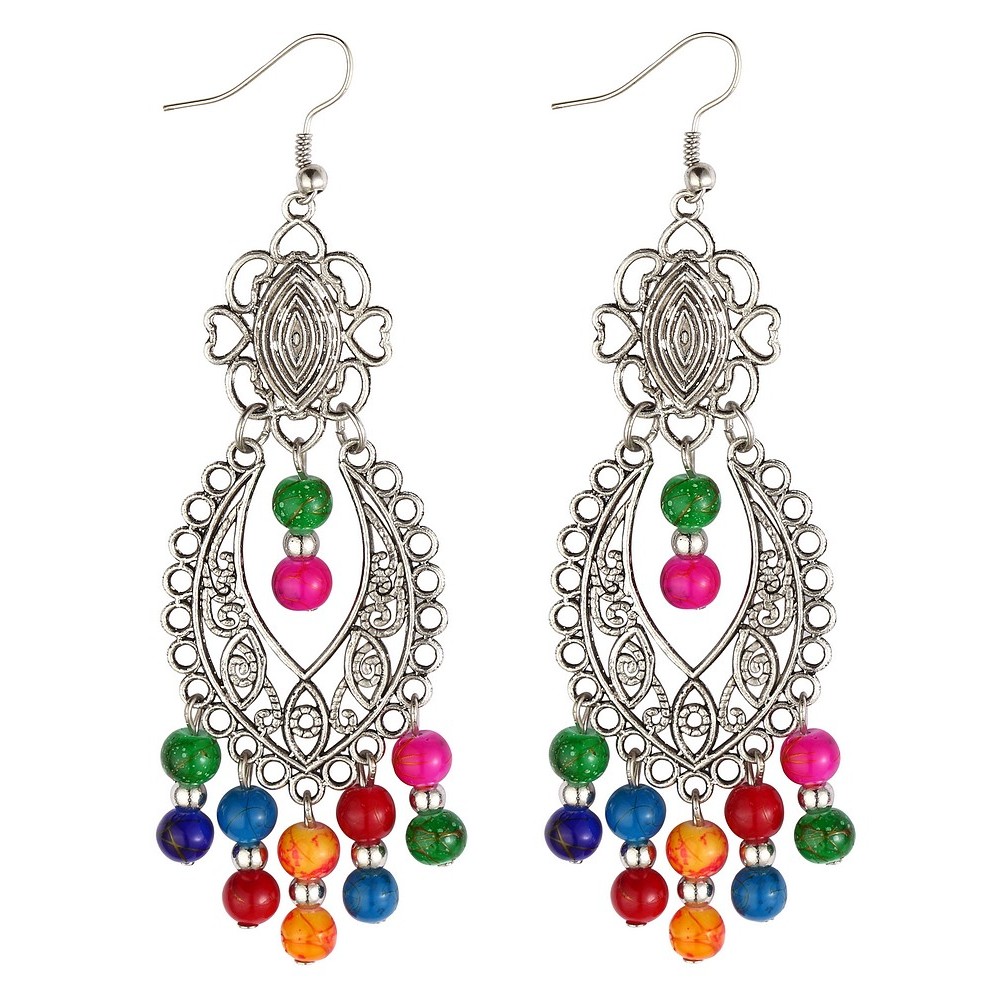 Drop Earring Filigree With Multi-coloured Beads Made With Tin Alloy Barcode: 5051410325288