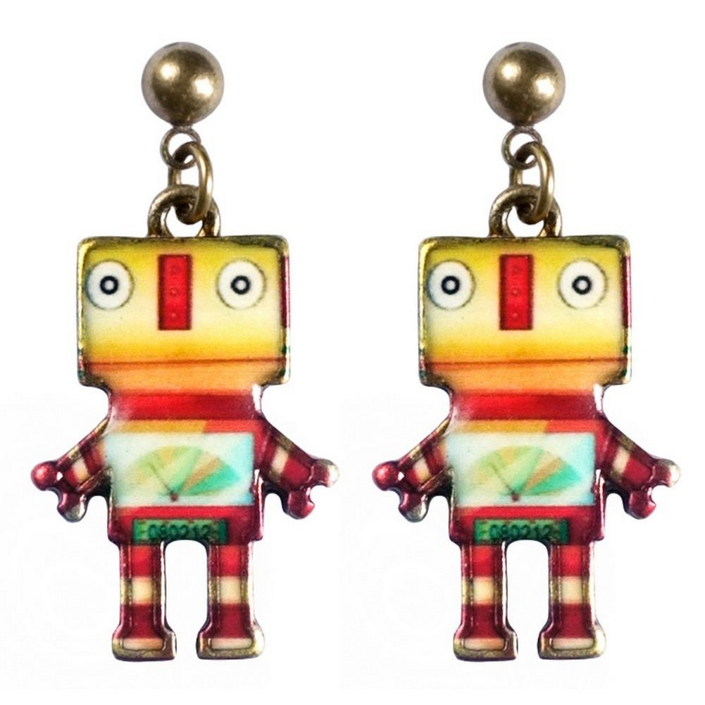 Stud & Drop Earring Robot Made With Tin Alloy & Enamel Barcode: 5051410538923