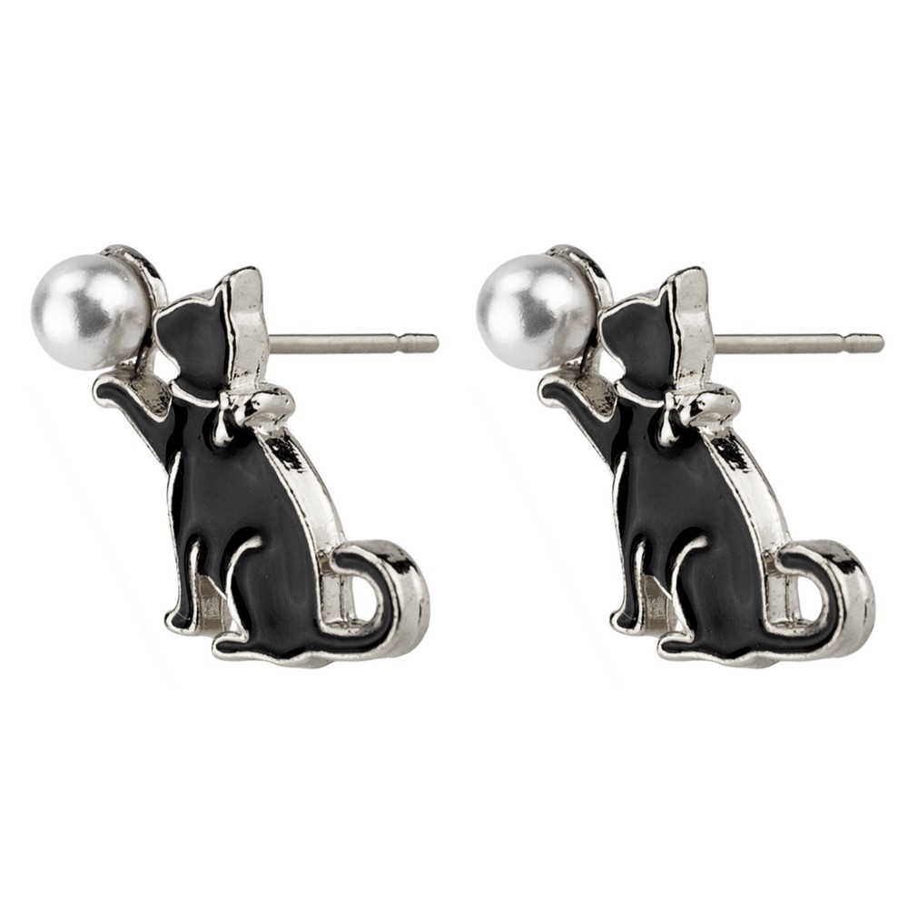Stud Earring Black Cat Made With Enamel & Pearl Barcode: 5051410765732