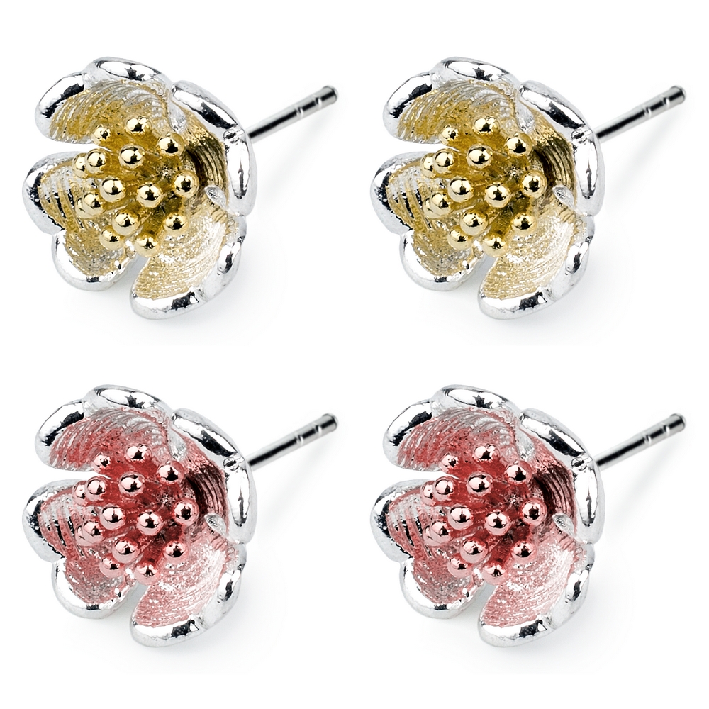 Stud Earring Two Tone Flower Made With Tin Alloy Barcode: 5051410812856