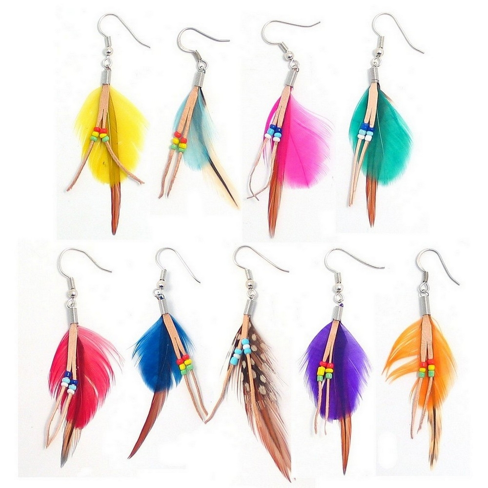 Drop Earring Feather & Bead Made With Zinc Alloy Barcode: 5051410119801