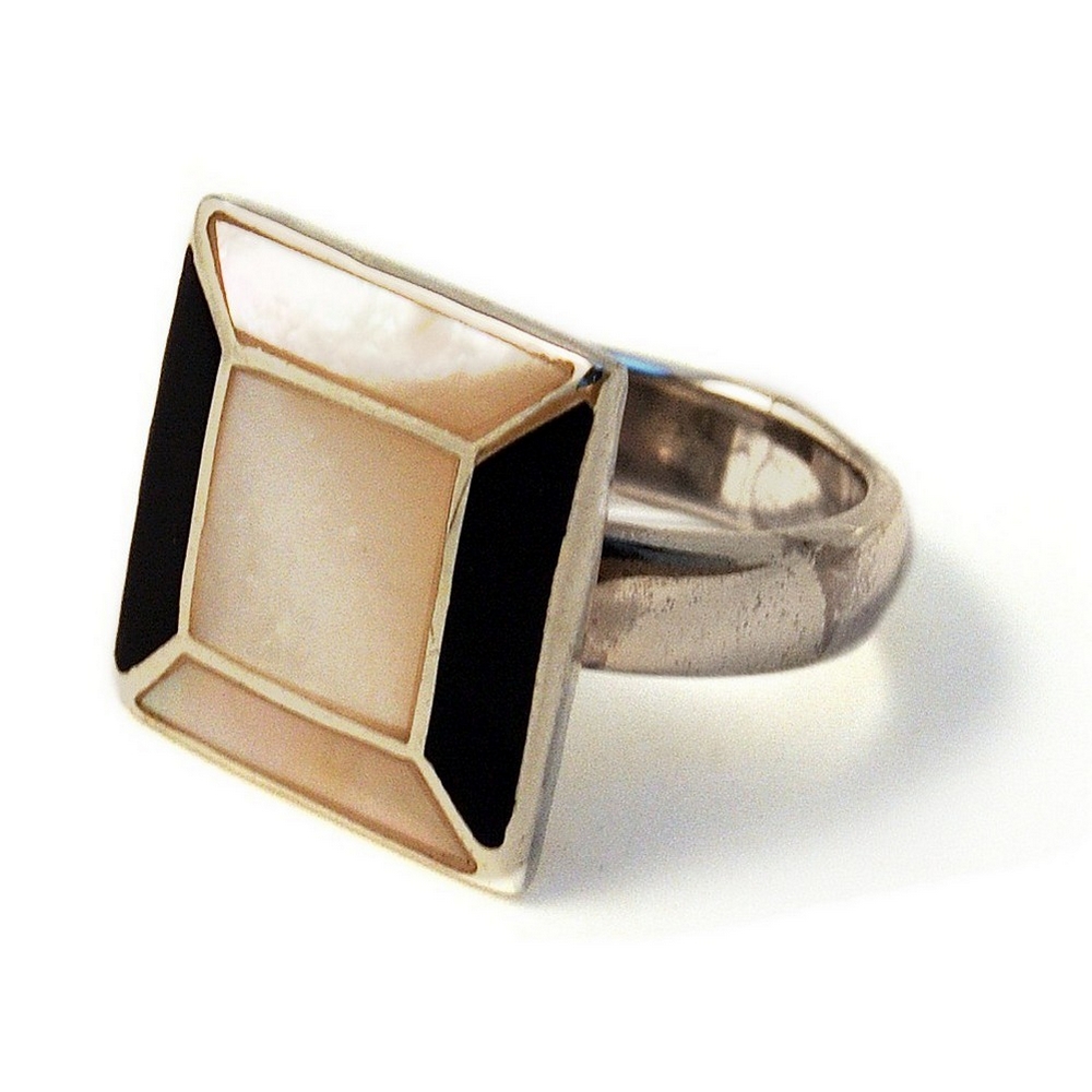 Ring Blk/w Square Front Made With 925 Silver & Shell Barcode: 5051410153980