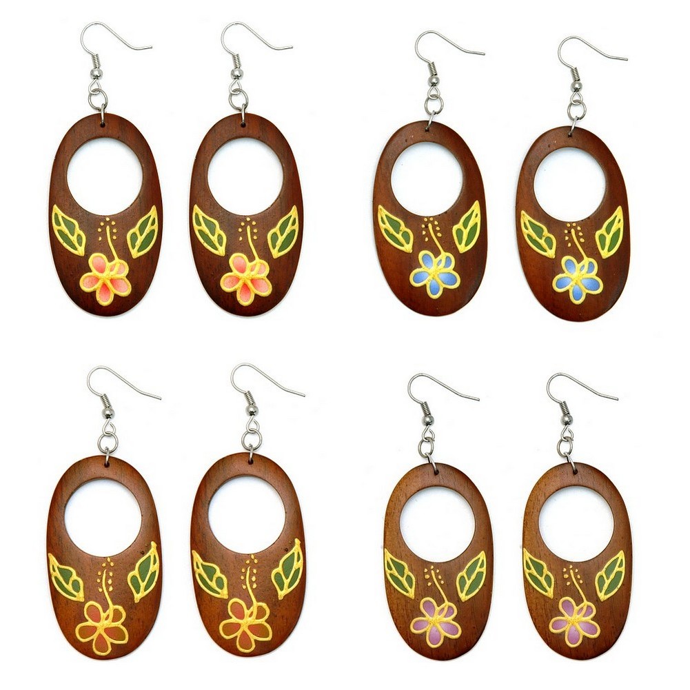 Drop Earring Gold Outline Flower Oval Made With Wood Barcode: 5051410162562