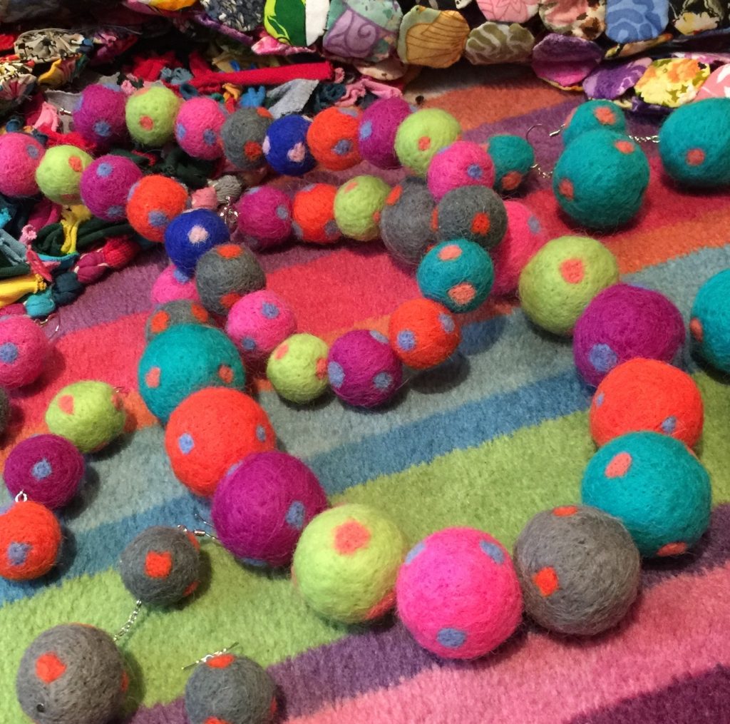 This new polka-dot selection builds on our best-selling self-colour pom-pom range which includes a great number of designs. Styles range from simple single colour rings, stud earrings and drops to treble drop earrings in self-colours. Treble-drop mixed colour drop earrings, multi – pom-pom necklace and bracelet and chain drop earring.The spectacular star of the show is the colourful bunch cluster!