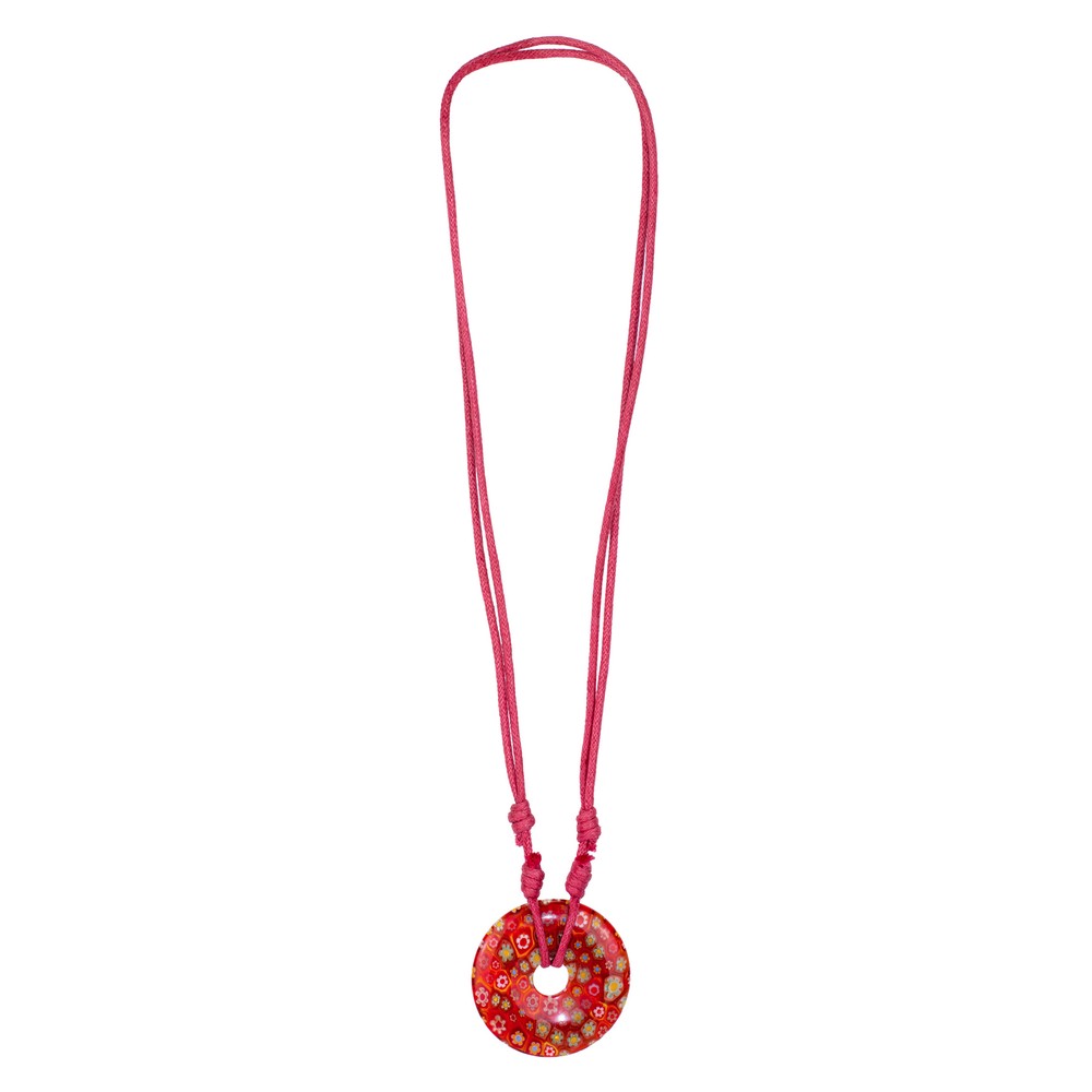This beautiful necklace choker was made using a glass working technique known as millefiori from the Italian mille – thousand and fiori -flowers. It involves making a design with pieces of glass and then heating and drawing (pulling) the assembled design to make canes which carry the design along the entire length. The canes are then cut into short lengths and the pieces are used to create colourful and unique jewellery or items such as vases and paperweights. The technique was most famously developed and exploited by the glass workers on the island of Murano near Venice and at one time millefiori beads, known as trade beads, were used as a currency.