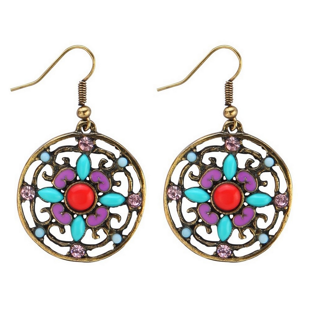 earring enamel embellished medallion 50mm