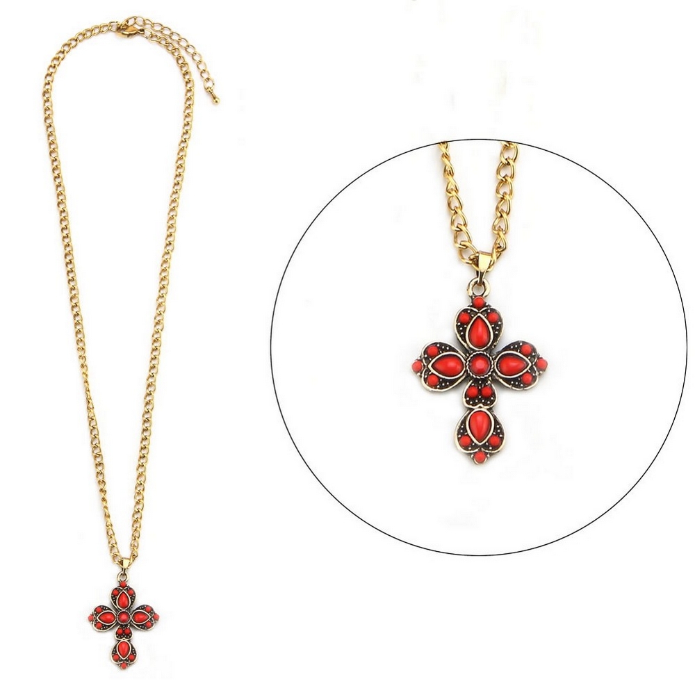 Necklace with a pendant enamel embellished french cross gold & red