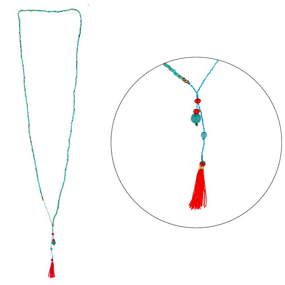 Necklace long glass japanese delicate bead with tassel available in 8 colours