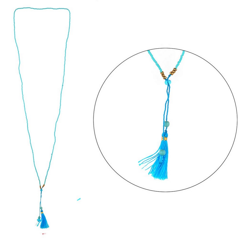 Necklace long glass japanese delicate bead with tassel available in 8 colours