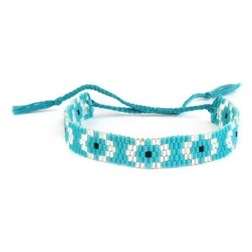 Bracelet glass Miyuki bead with tassel adjustable turquoise