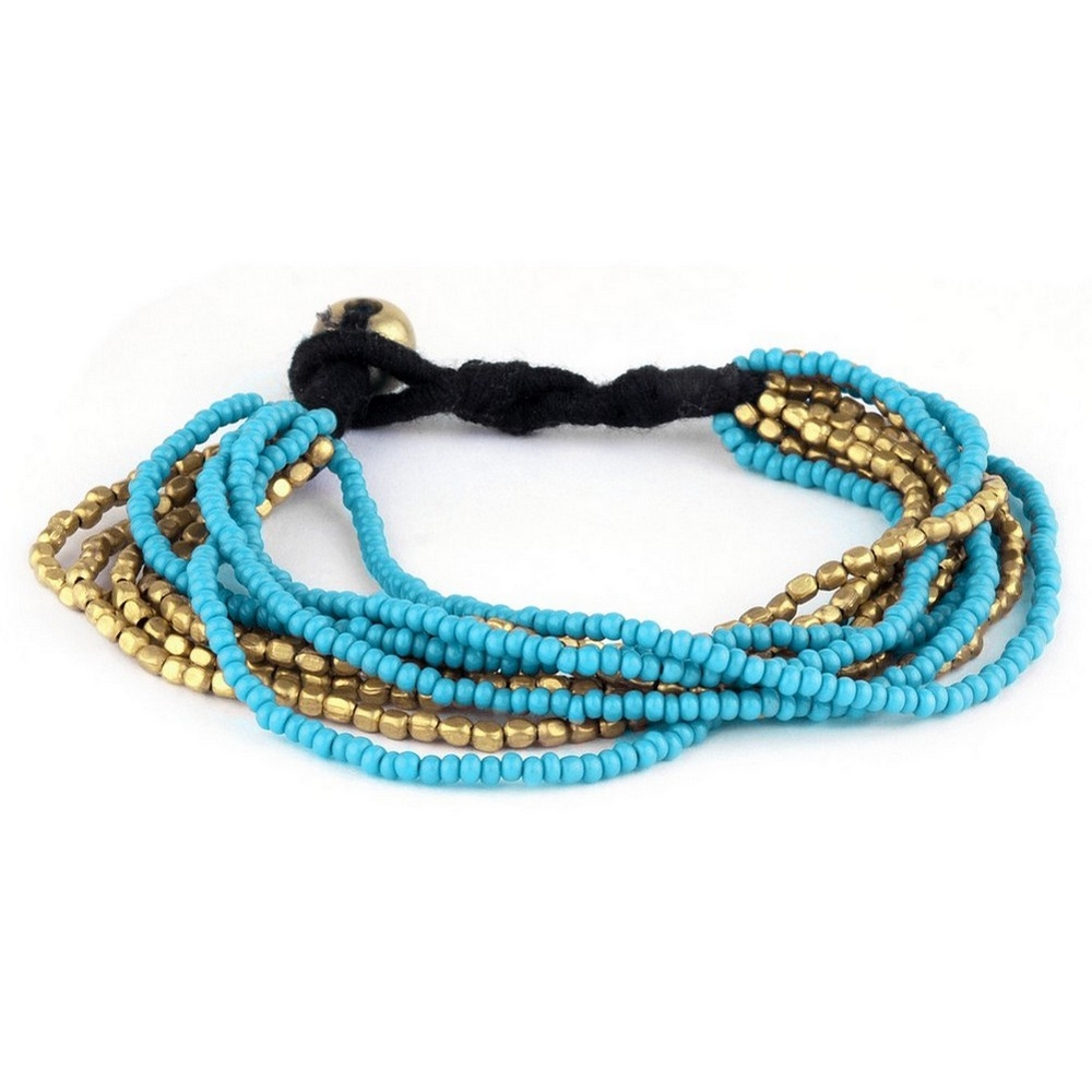 Bracelet glass bead 10 strands turquoise