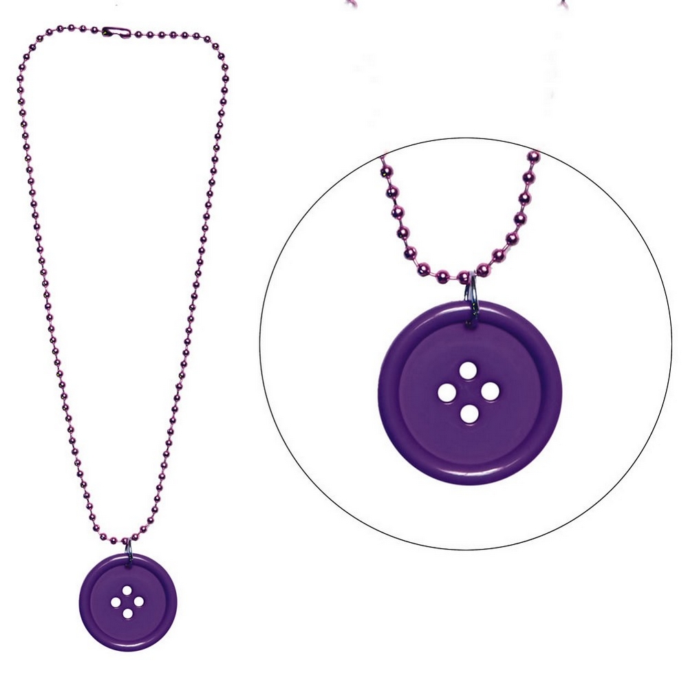 Necklace with a pendant resin button on a ball chain purple