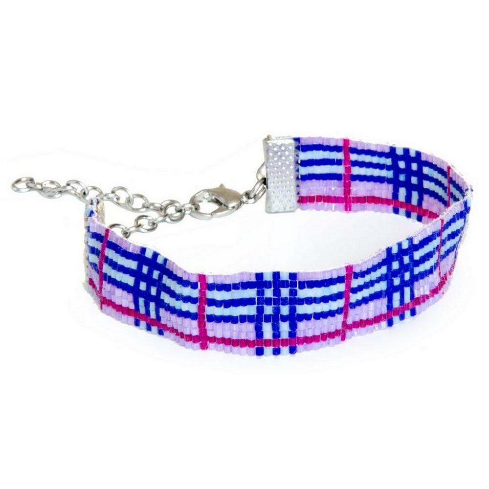 Bracelet glass tartan with Miyuki beads red blues