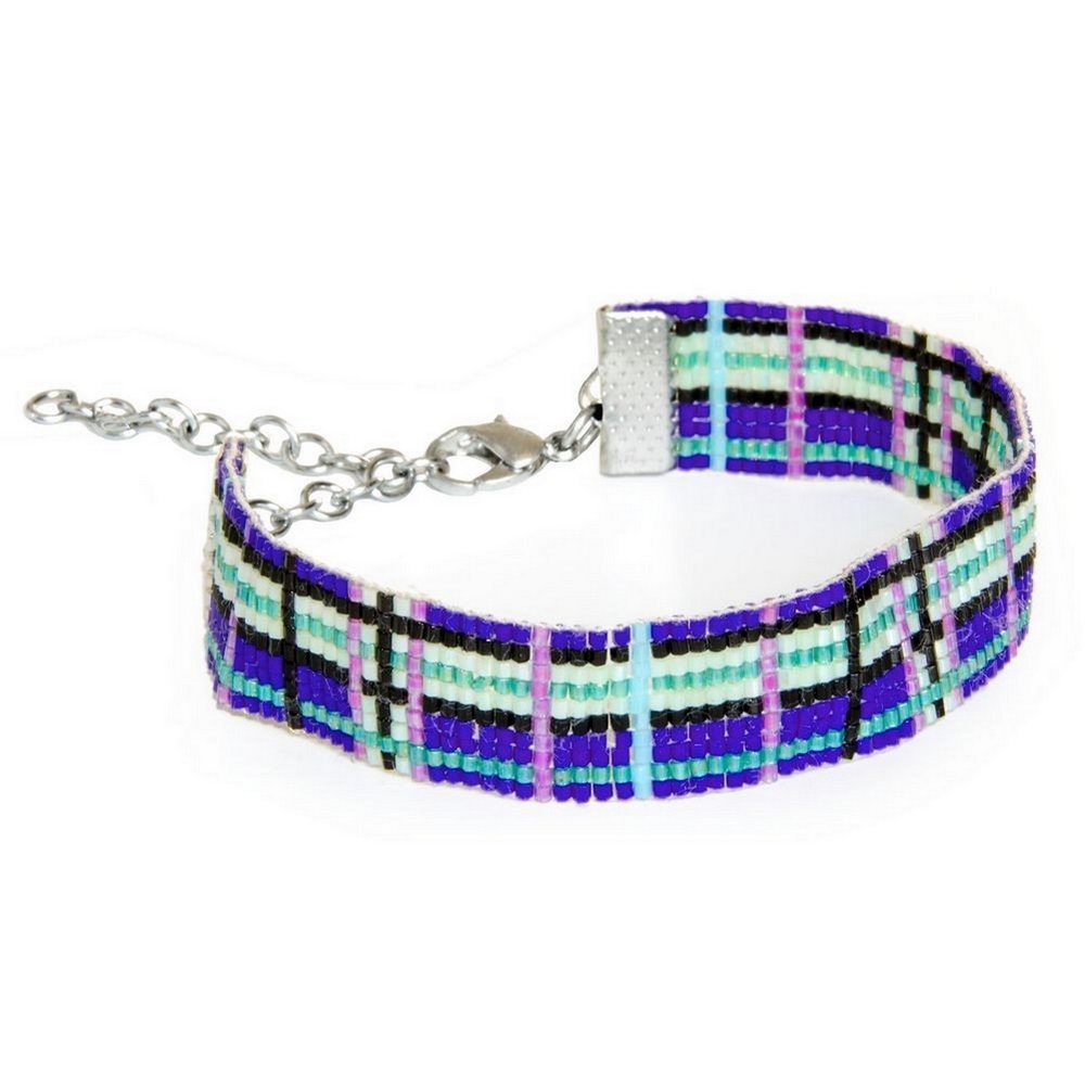 Bracelet glass tartan with Miyuki beads blue green black