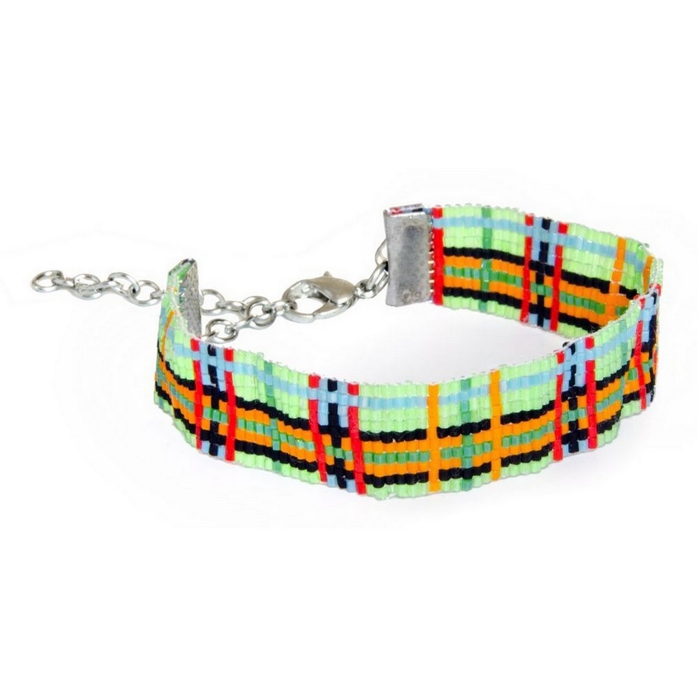 Bracelet glass tartan with Miyuki beads green orange black