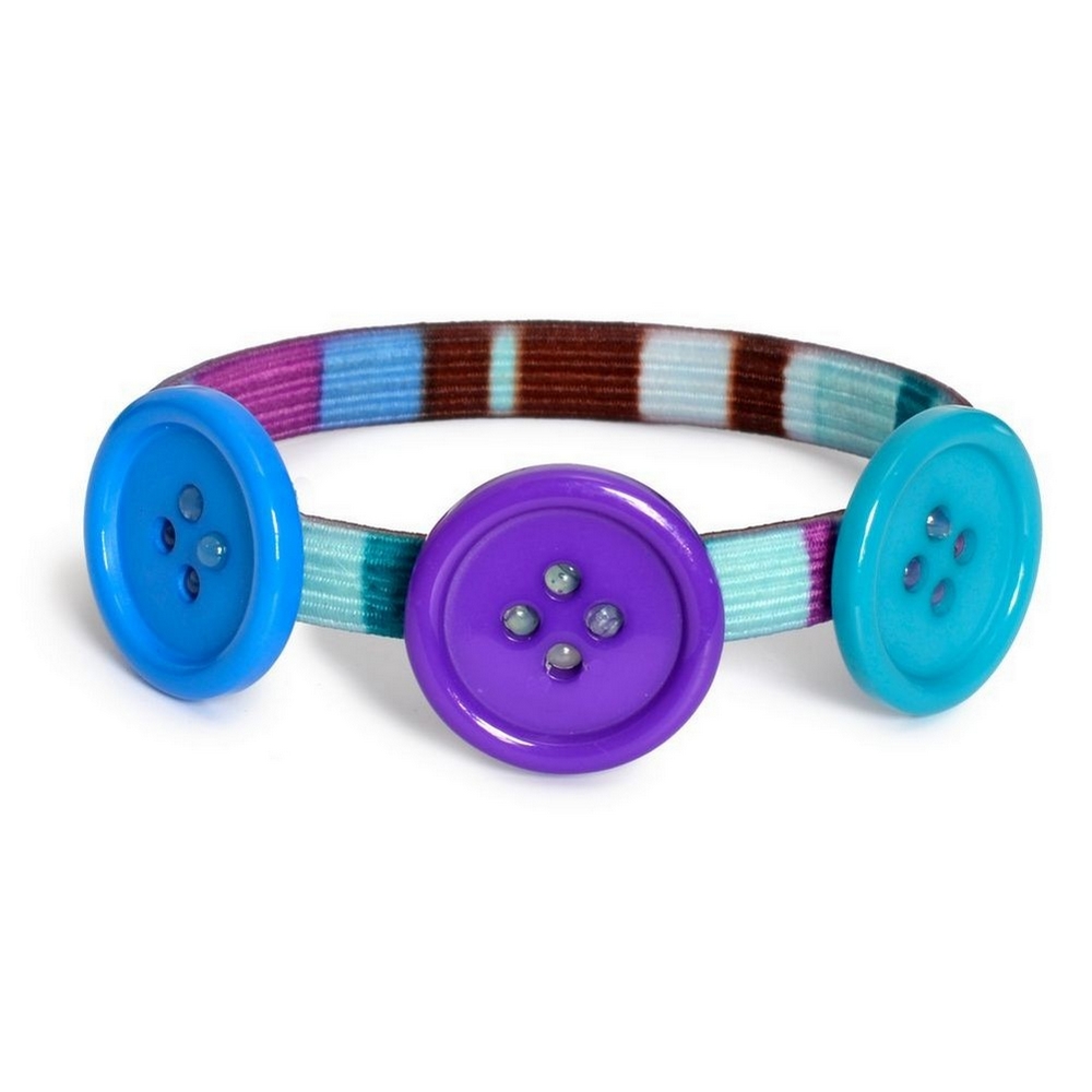 Bracelet stripe band with buttons turquoise purple blue