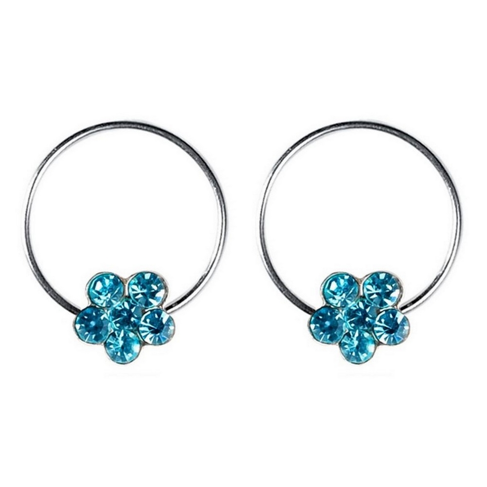 Hoop Earring Flower Stone Made With 925 Silver & Crystal Glass