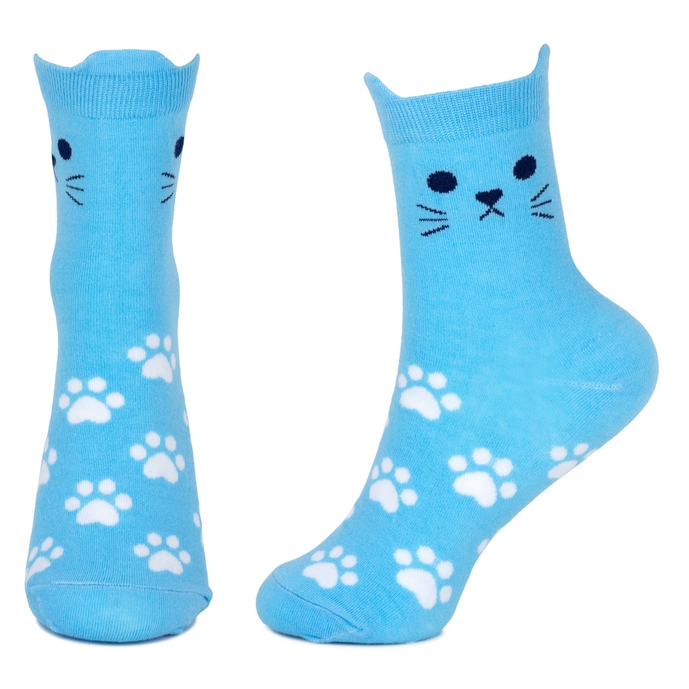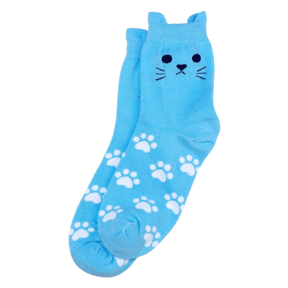 Socks cotton & spandex cat moggie paws blue