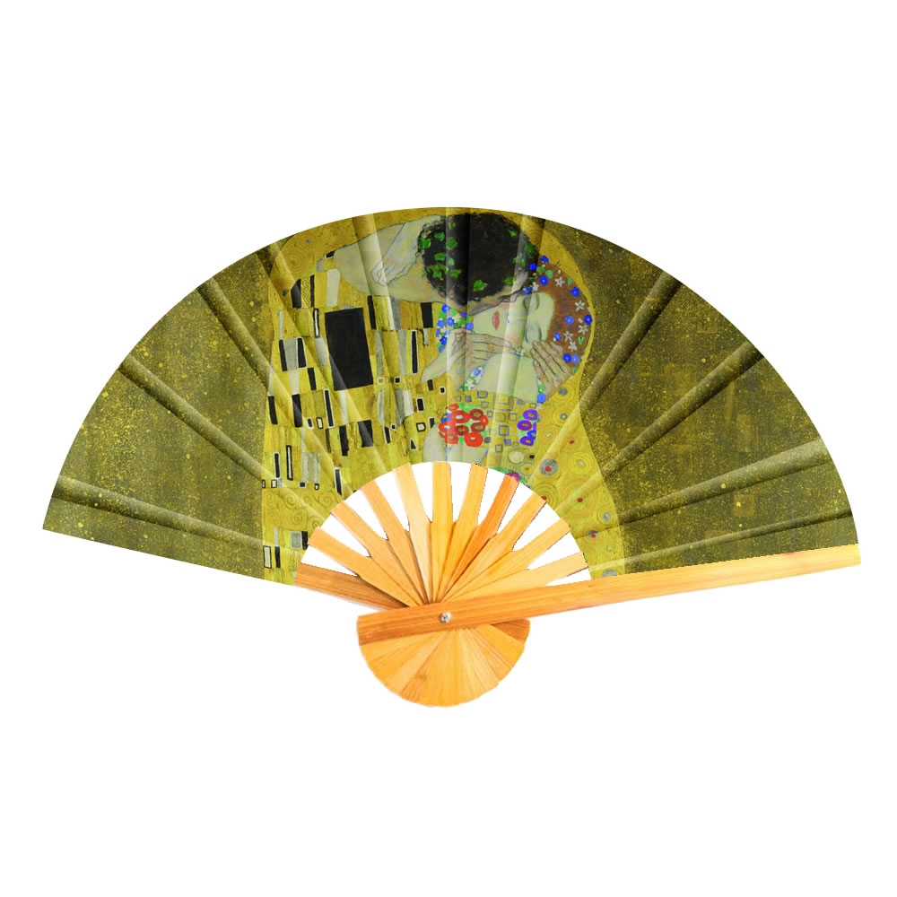 Fan polyester cotton mix & bamboo Klimt the kiss yellow