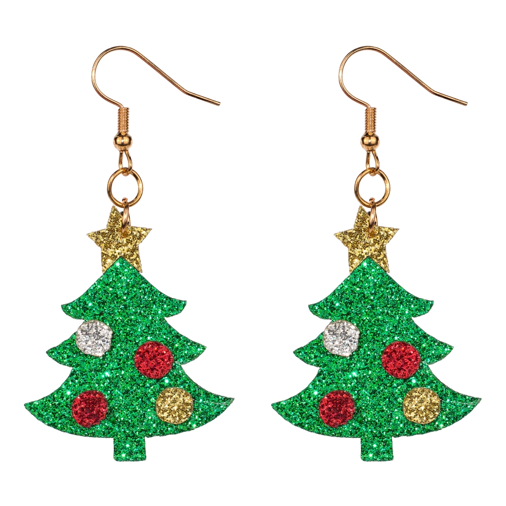 Drop earring acrylic festive friends green tree