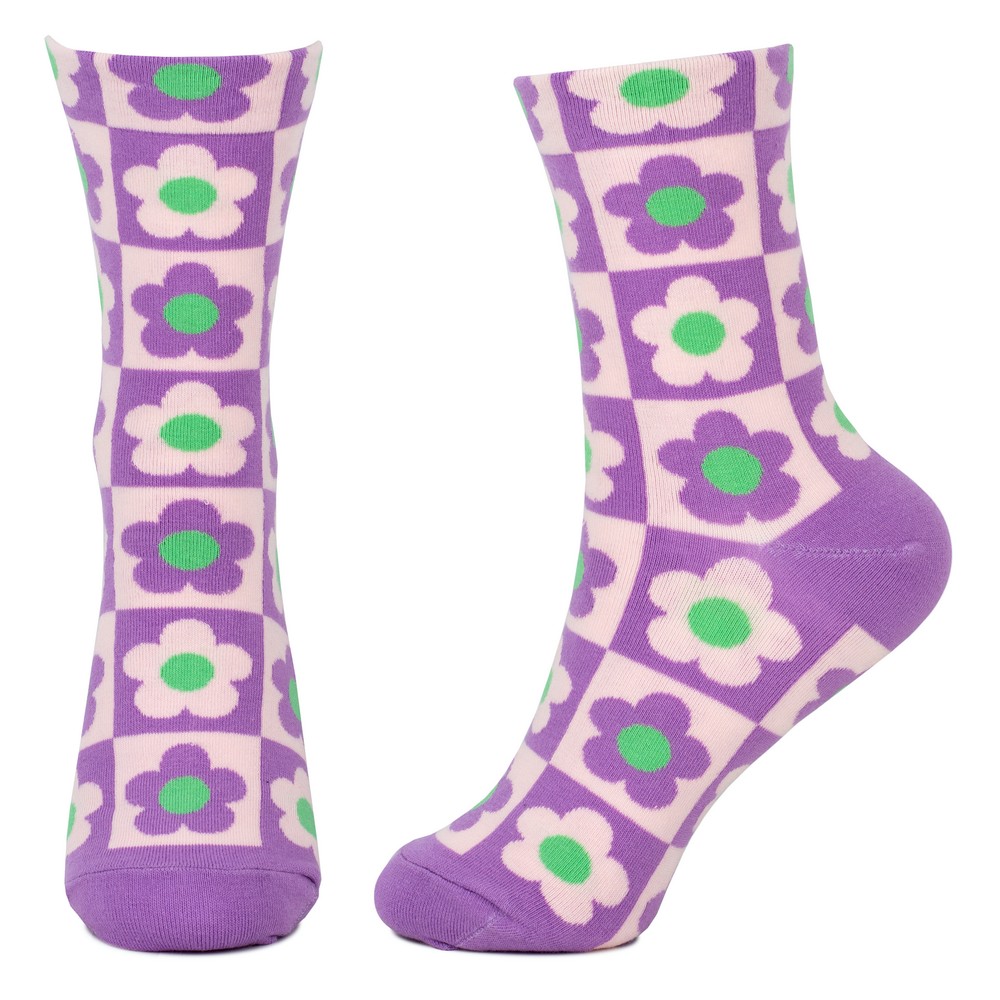 Socks cotton & spandex flower checkerboard lilac purple