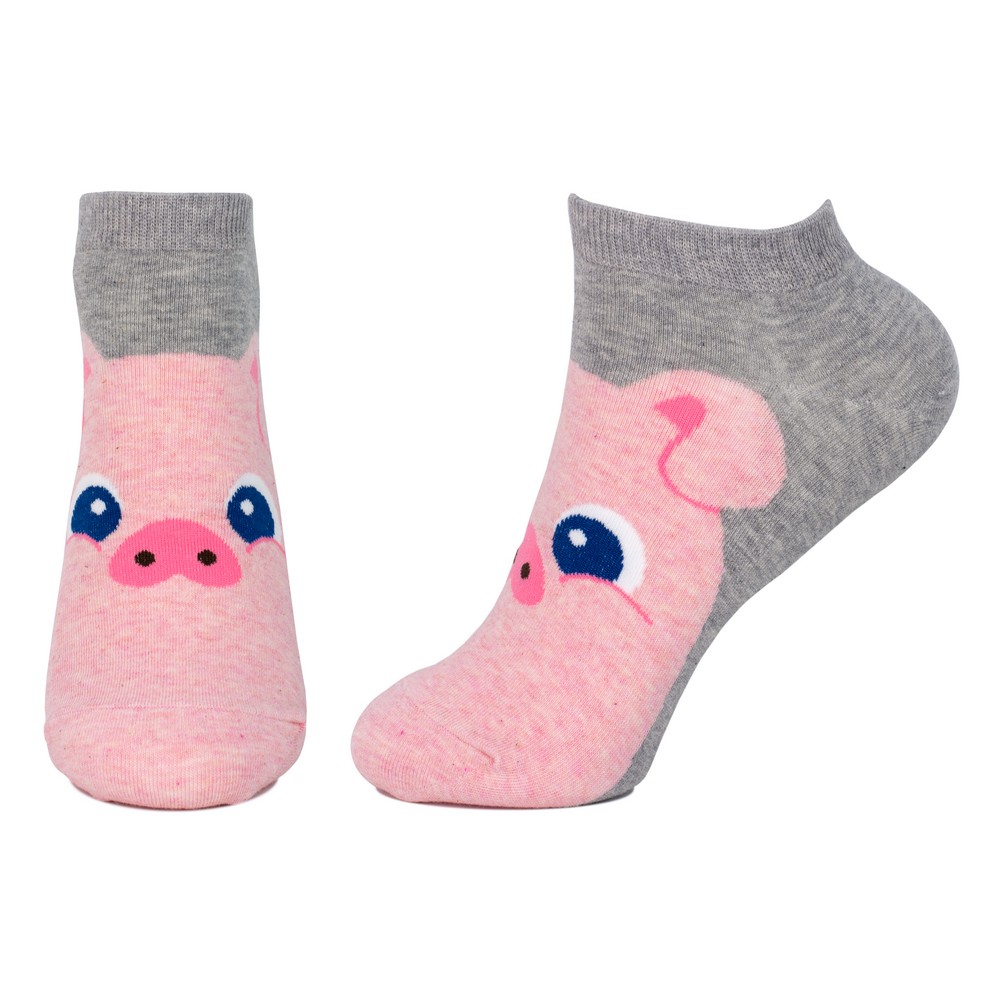 Socks cotton & spandex ankle playful pig grey
