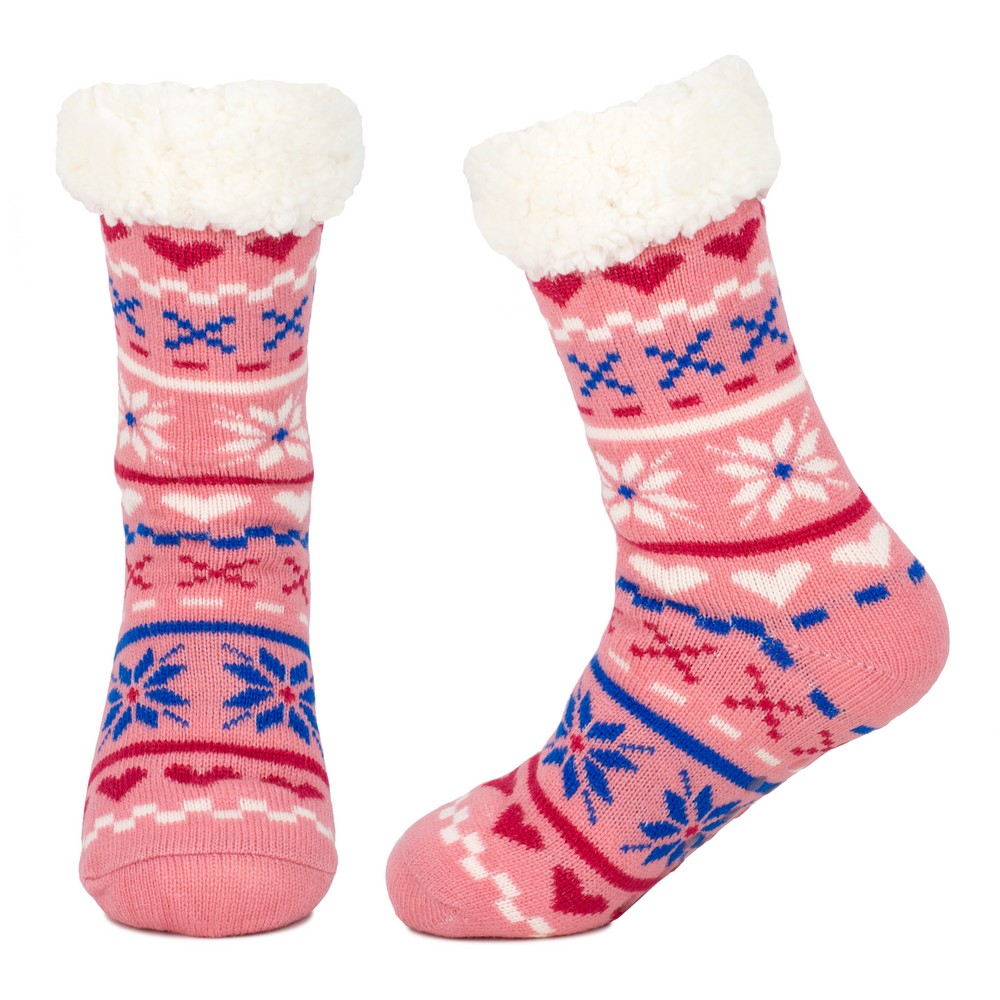 Stay cozy this winter with festive pink socks featuring charming hearts, snowflakes, and geometric patterns. Made from soft, insulating fabric with a fluffy white cuff, they provide warmth and comfort for chilly days. Perfect for lounging, gifting, or pairing with boots. Shop now!