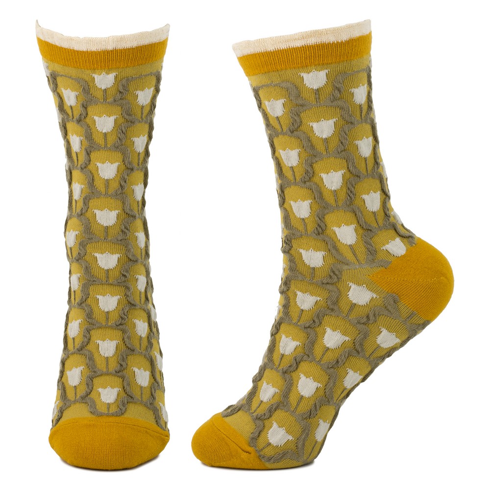 Socks cotton & spandex glitter frill tulip mustard yellow