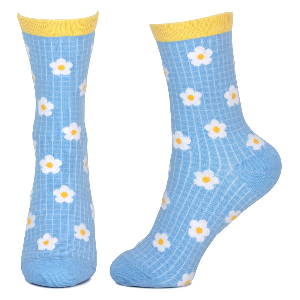 Socks cotton & spandex spring flower grid blue