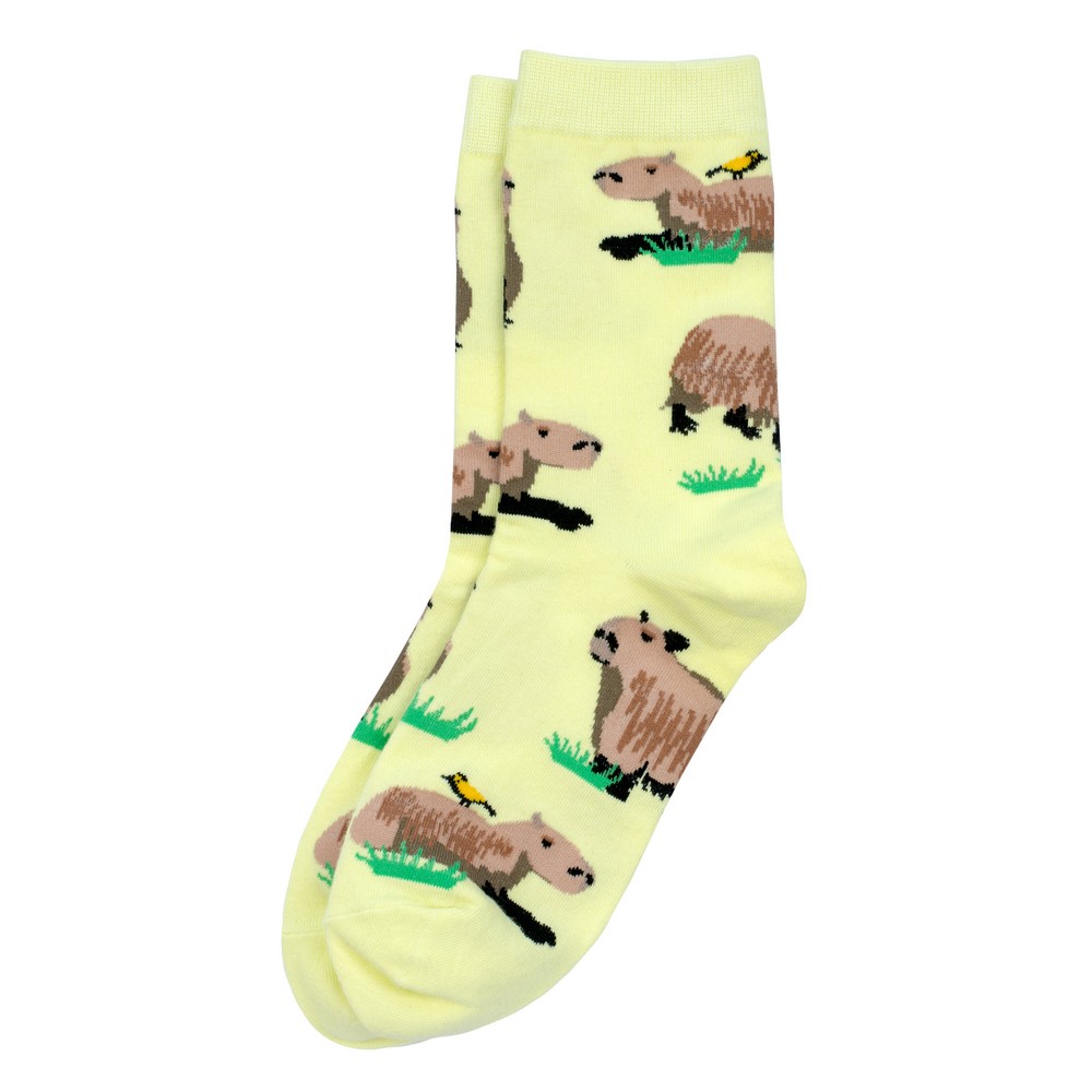 Stand out with novelty socks that charm and delight. These yellow socks showcase playful capybara and bird illustrations, ideal for retailers targeting customers who love unique, animal-themed accessories. Crafted for comfort and visual appeal, theyre a must-have for gift shops, lifestyle boutiques, and trend-forward collections.