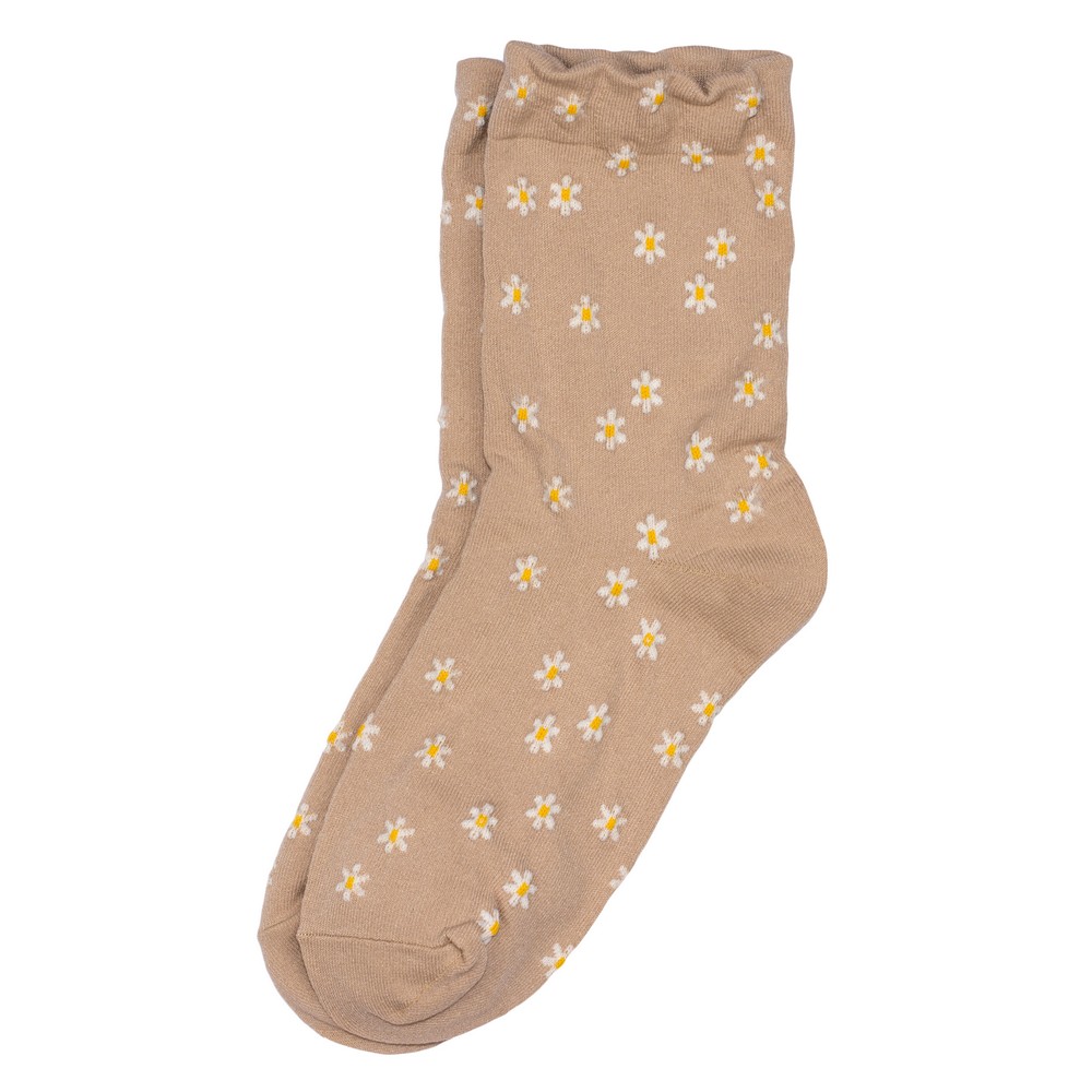 Introduce a popular, on-trend item to your store with our beige daisy floral drew socks. This style offers a sophisticated twist on the classic floral sock, with a versatile beige base that appeals to a wide range of customers. The multi-colored daisy pattern is a proven seller, perfect for boutiques, gift shops, and fashion retailers looking to offer playful yet practical accessories These socks are crafted from a high-quality, durable cotton blend, ensuring customer satisfaction and repeat business. The vibrant print maintains its integrity and color through multiple washes, making them a reliable and profitable item. Our wholesale lots are perfectly packaged and ready for display, providing a seamless addition to your inventory.