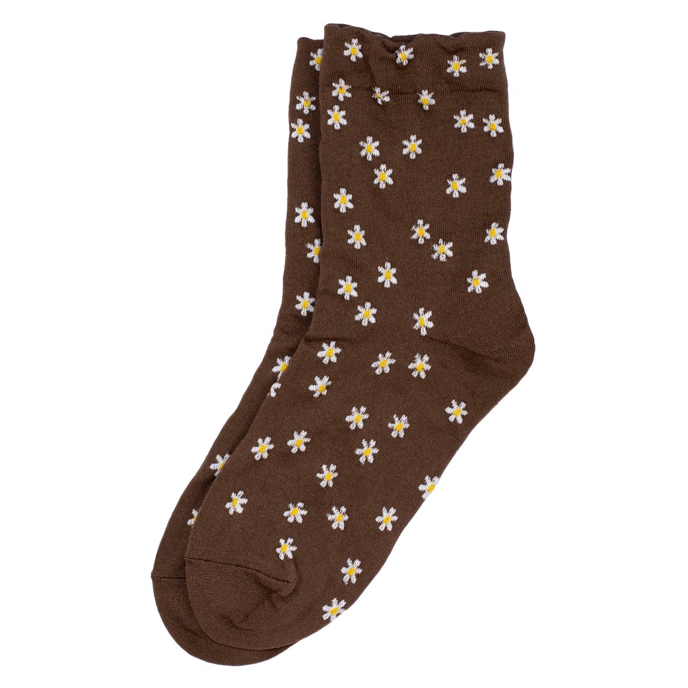 Expand your inventory with a popular, trending item, our brown daisy floral crew socks. This style offers a sophisticated twist on the classic floral sock, with an earthy brown background that appeals to a wide range of customers. This versatile design is perfect for boutiques, gift shops, and fashion retailers looking to offer playful yet practical accessories that stand out from the crowd Crafted from a high-quality, durable cotton blend, these socks are made to satisfy customers with both comfort and longevity. The vibrant print on the rich brown background ensures they catch the eye and are a great addition to any product display. Our wholesale lots provide a profitable margin and are ready for immediate retail. Made from a high-quality, durable cotton blend, these socks are designed to meet customer expectations for both comfort and longevity. The vibrant daisy print on the rich olive green background ensures they stand out on any display, driving quick sales. Our wholesale lots are a profitable, low-risk addition to your product line and are ready for immediate retail.