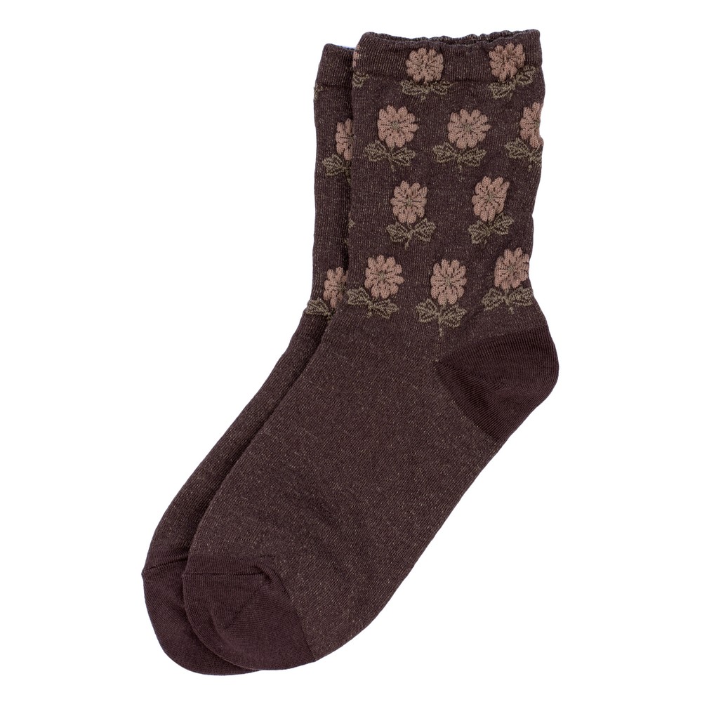 Introduce a popular and stylish item to your inventory with our Wholesale Brown Dahlia Floral Crew Socks. This designs rich brown color and retro botanical print tap into current trends for earthy tones and vintage-inspired aesthetics, making it a high-demand product for boutiques and fashion retailers. Made with a premium, durable cotton blend, these socks are both comfortable and long-lasting, ensuring customer satisfaction. The high-quality print maintains its clarity and color after multiple washes. Available in bulk lots, these socks are a low-risk, profitable addition to your product line and are ready for immediate retail display.