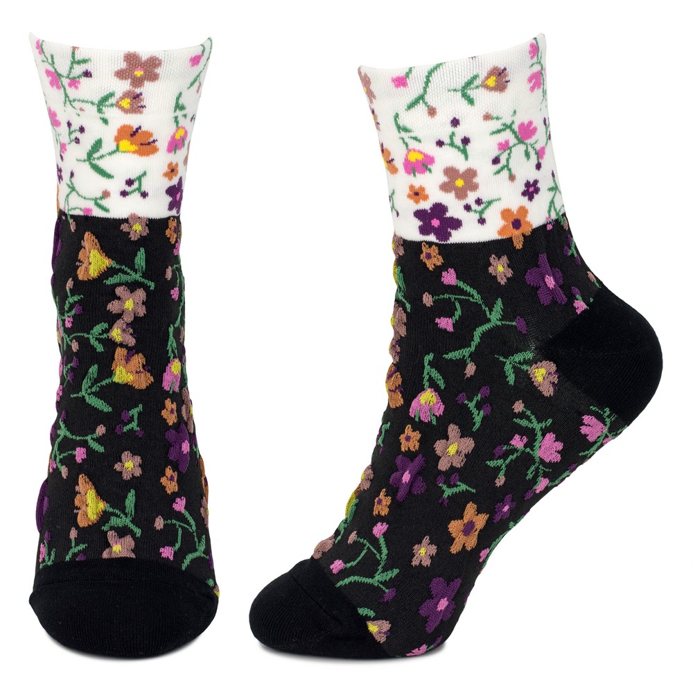 Socks cotton & spandex floral muse black