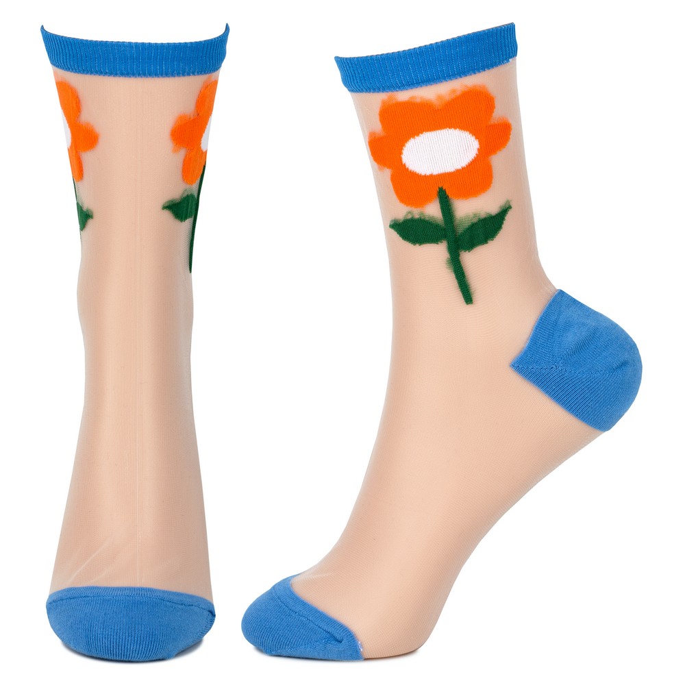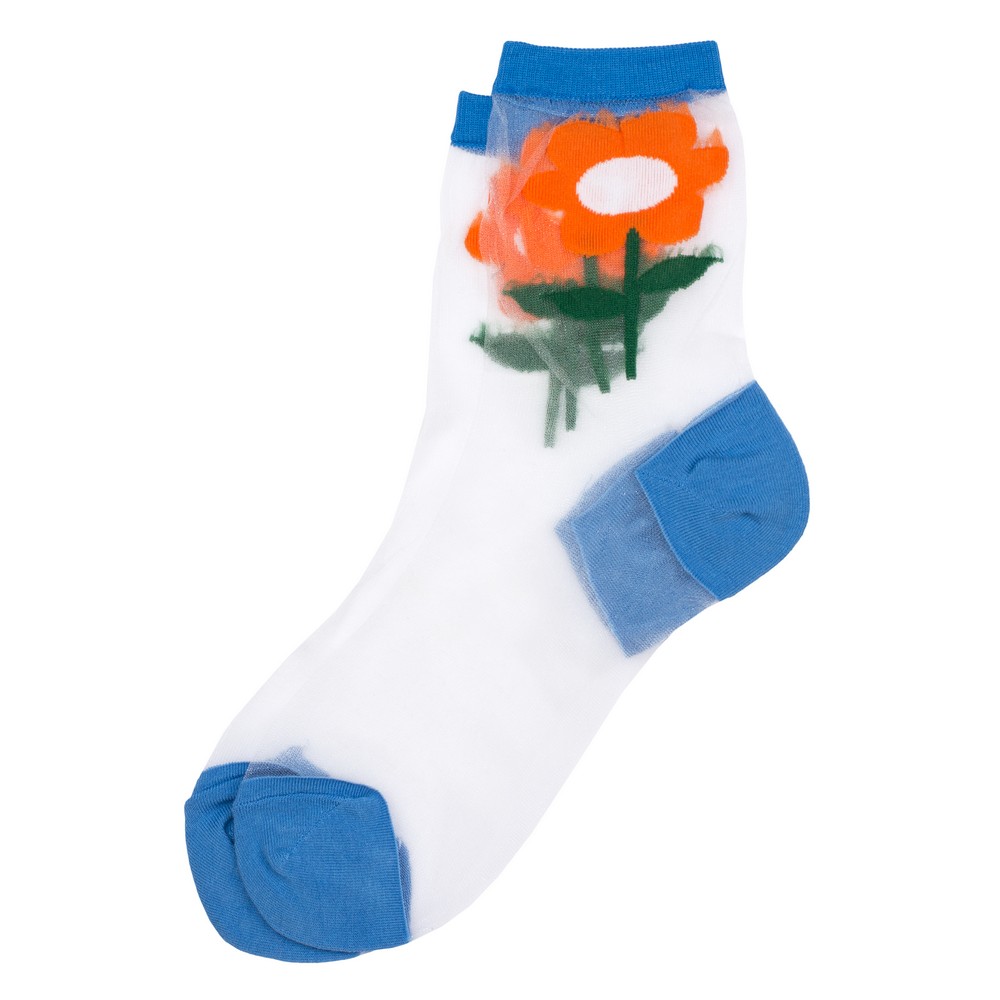 Socks cotton sheer big flower blue