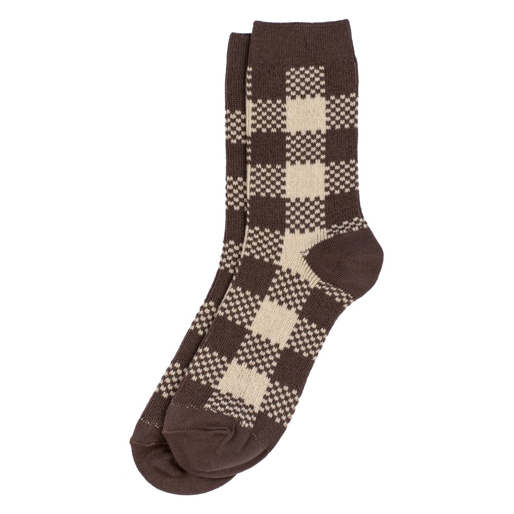 Socks cotton colour block checkered brown
