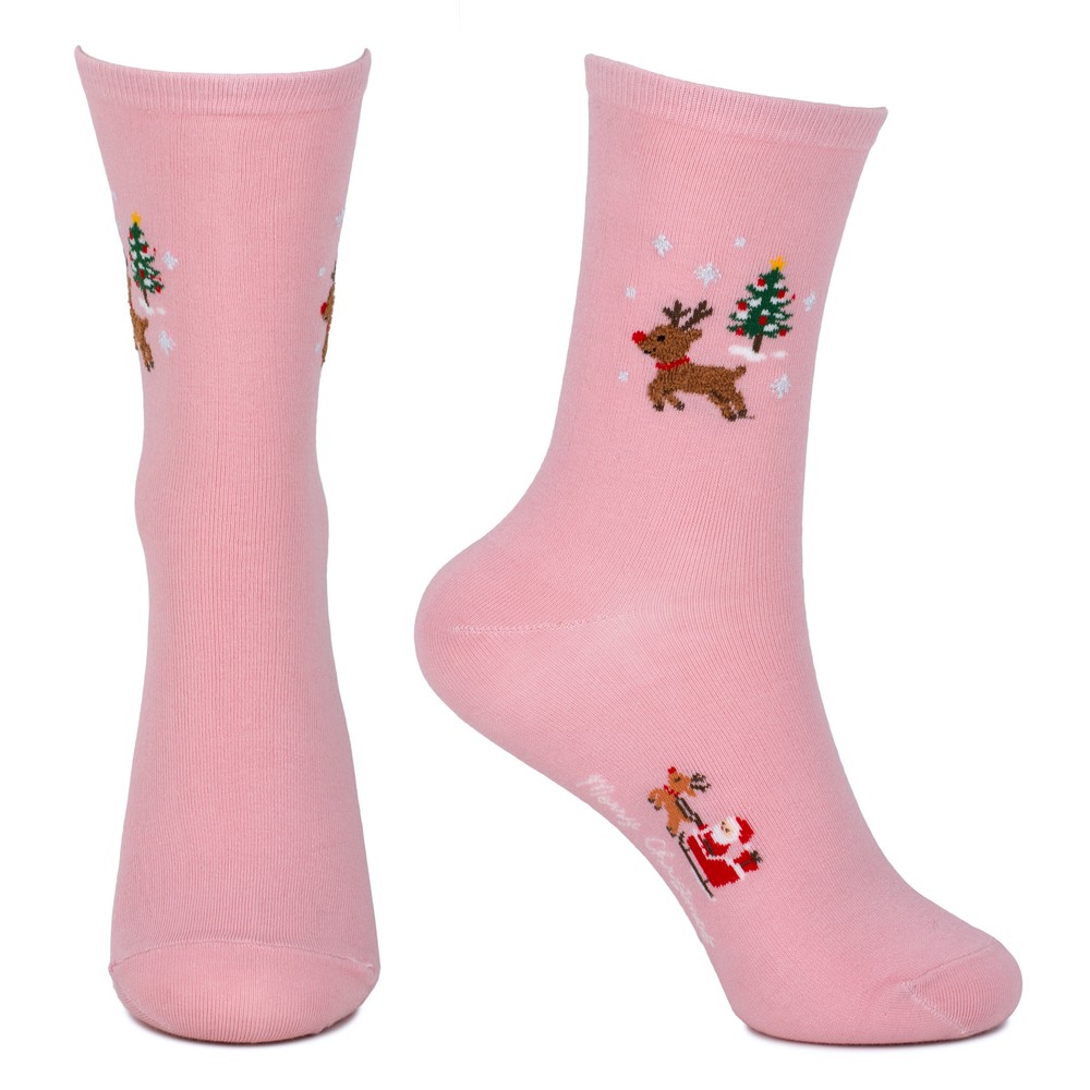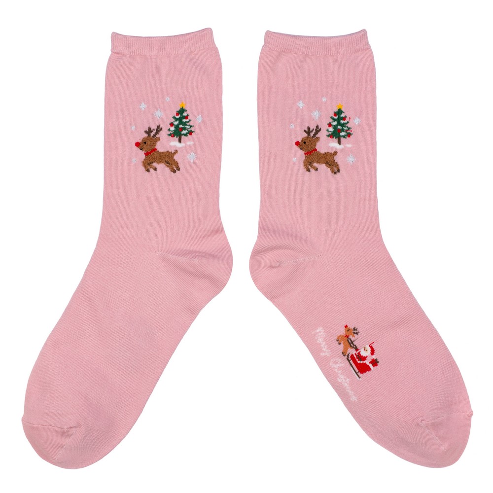 Socks cotton & spandex christmas mini scene pink