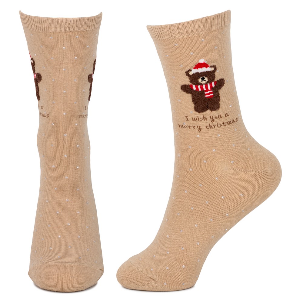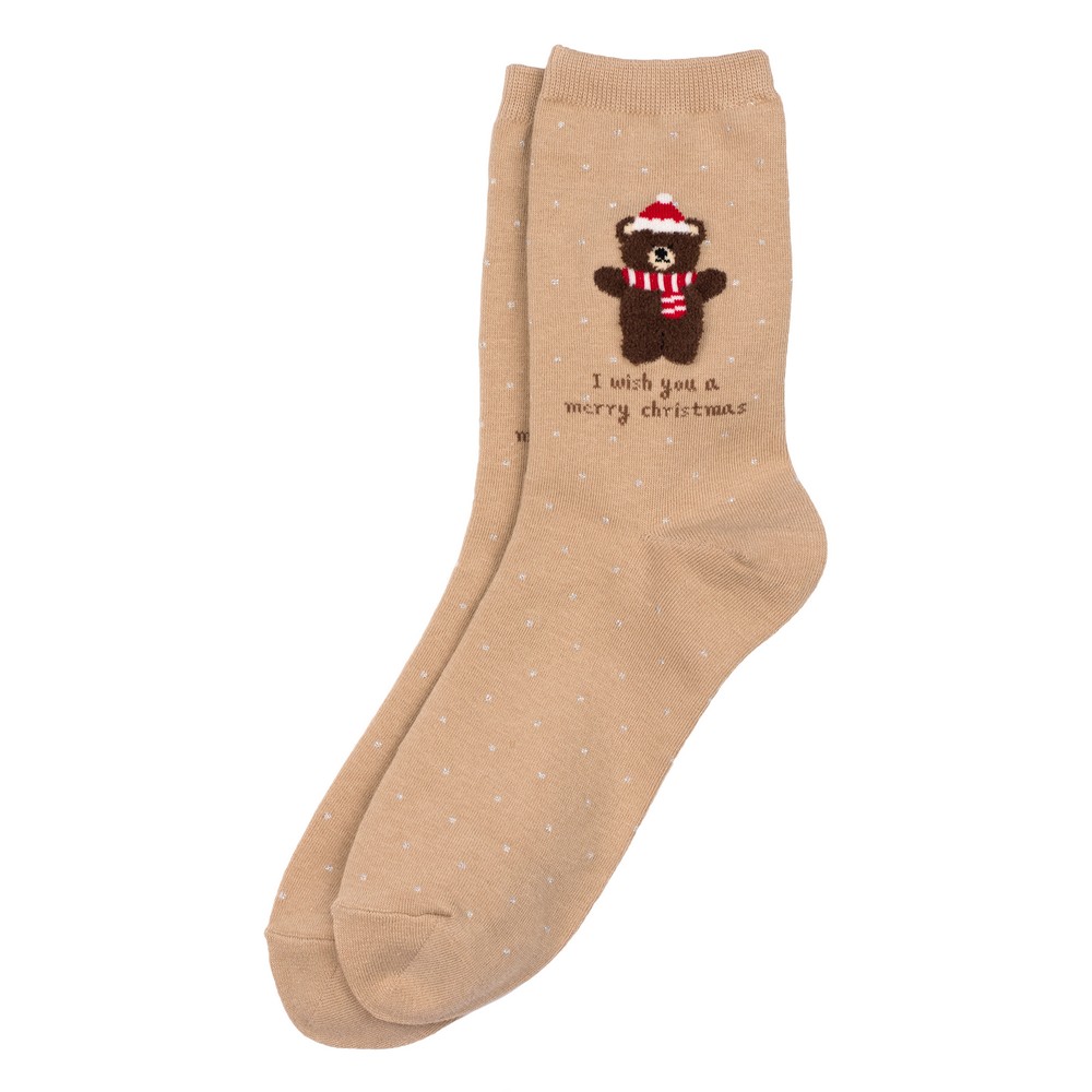 Socks cotton & spandex polka festive bear icon beige
