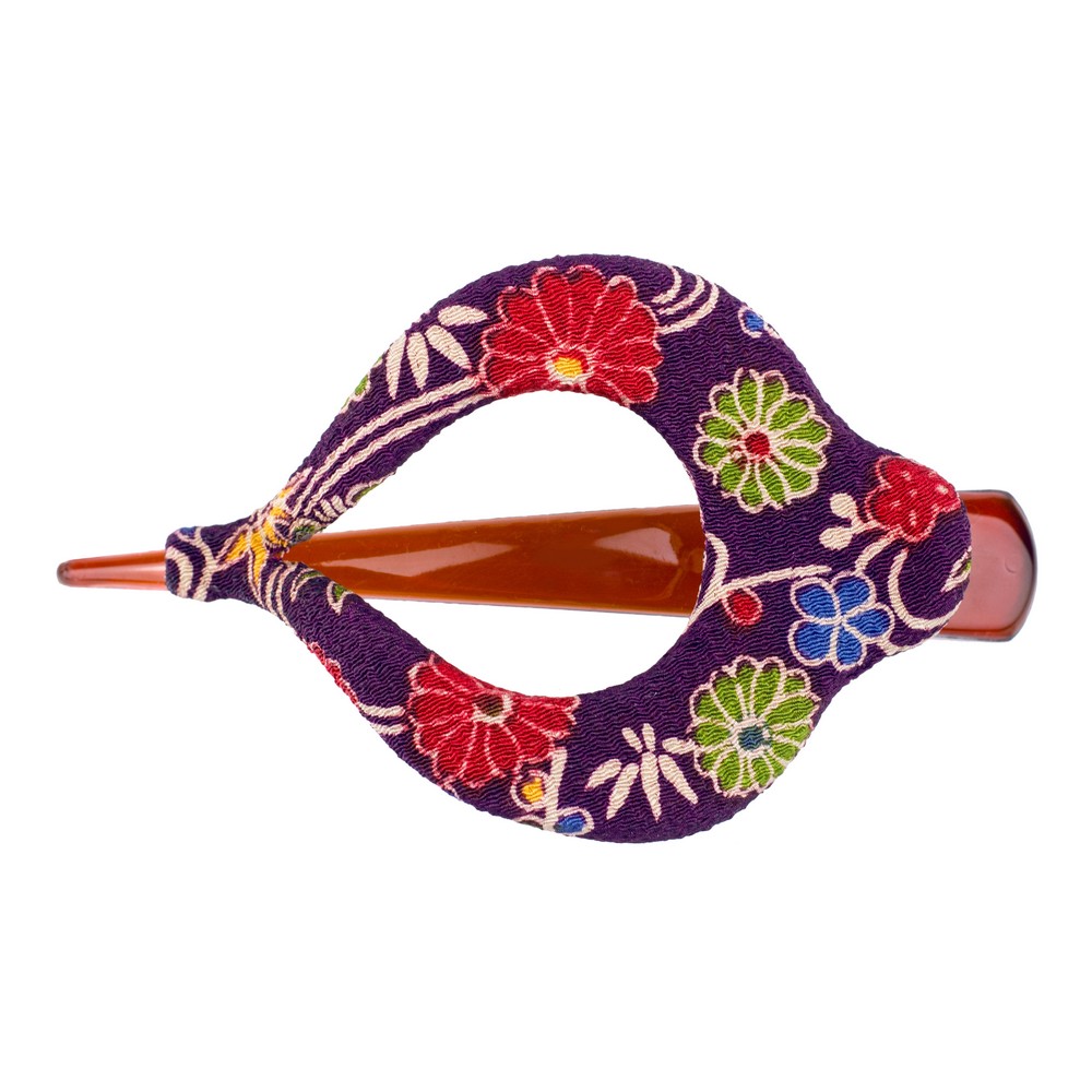 Hairwear cotton chirimen kimono print harp purple