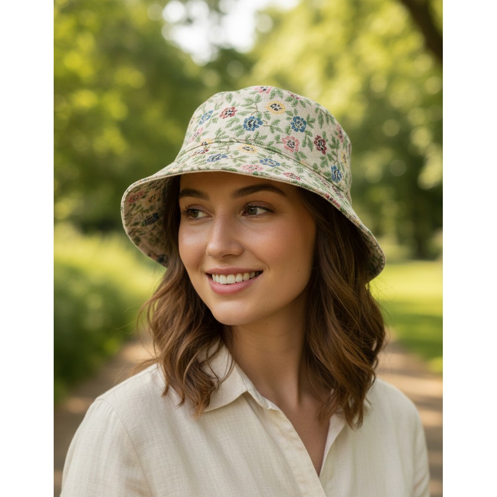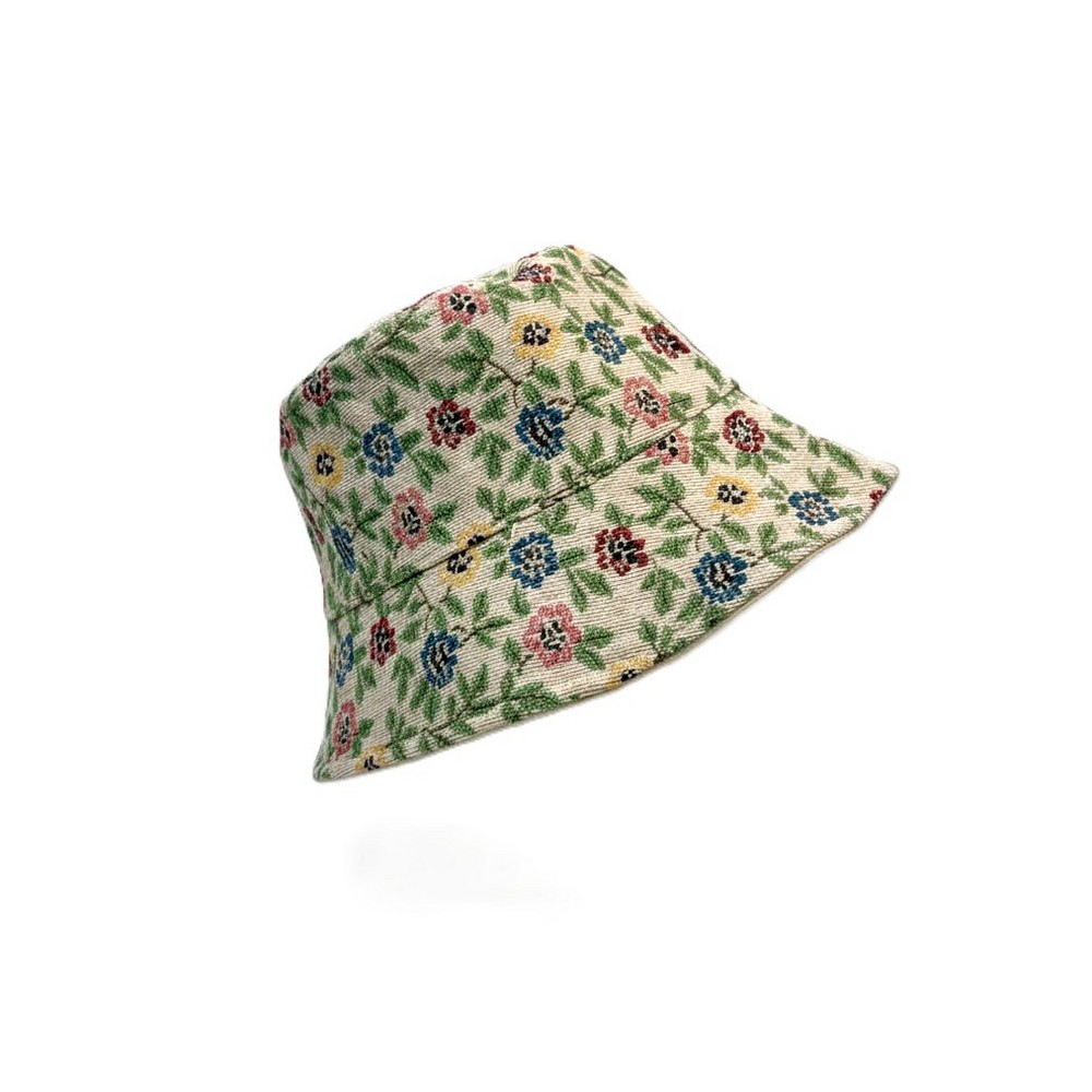 Hat bucket embroidered floral off-white