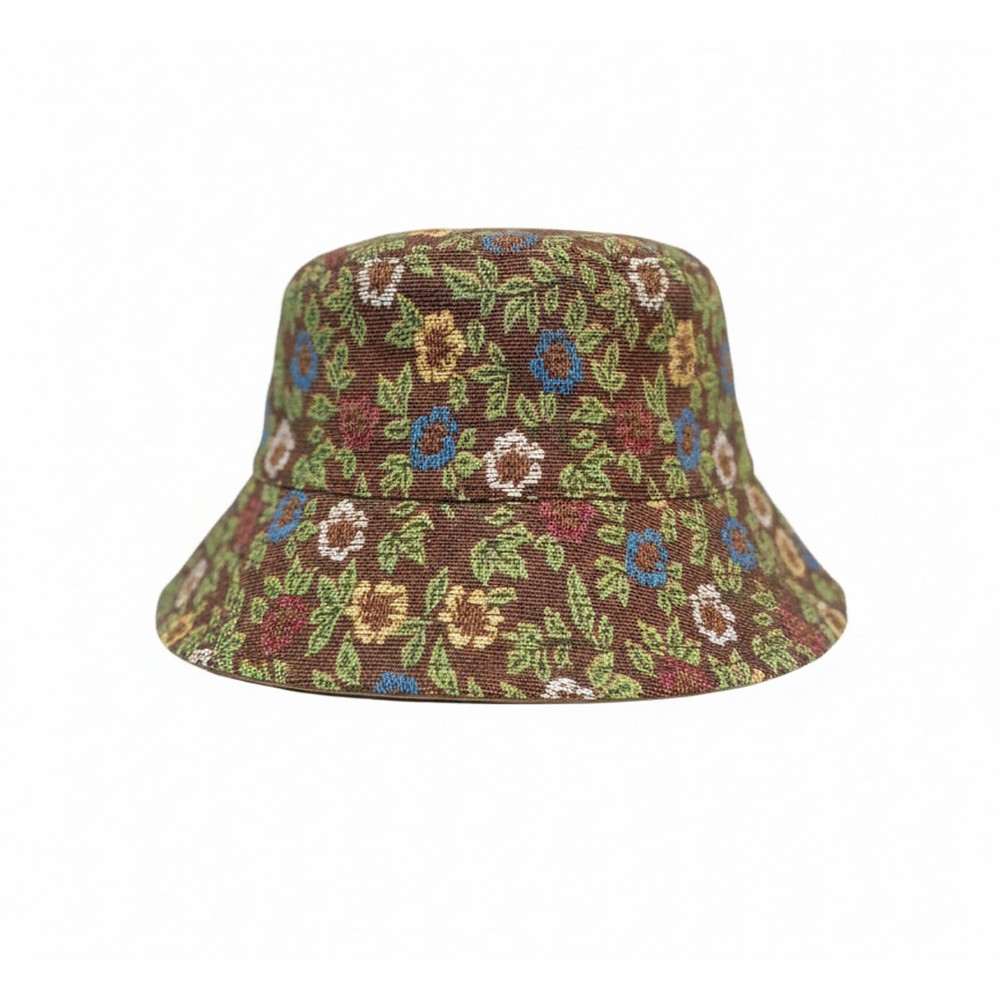 Hat bucket embroidered floral brown